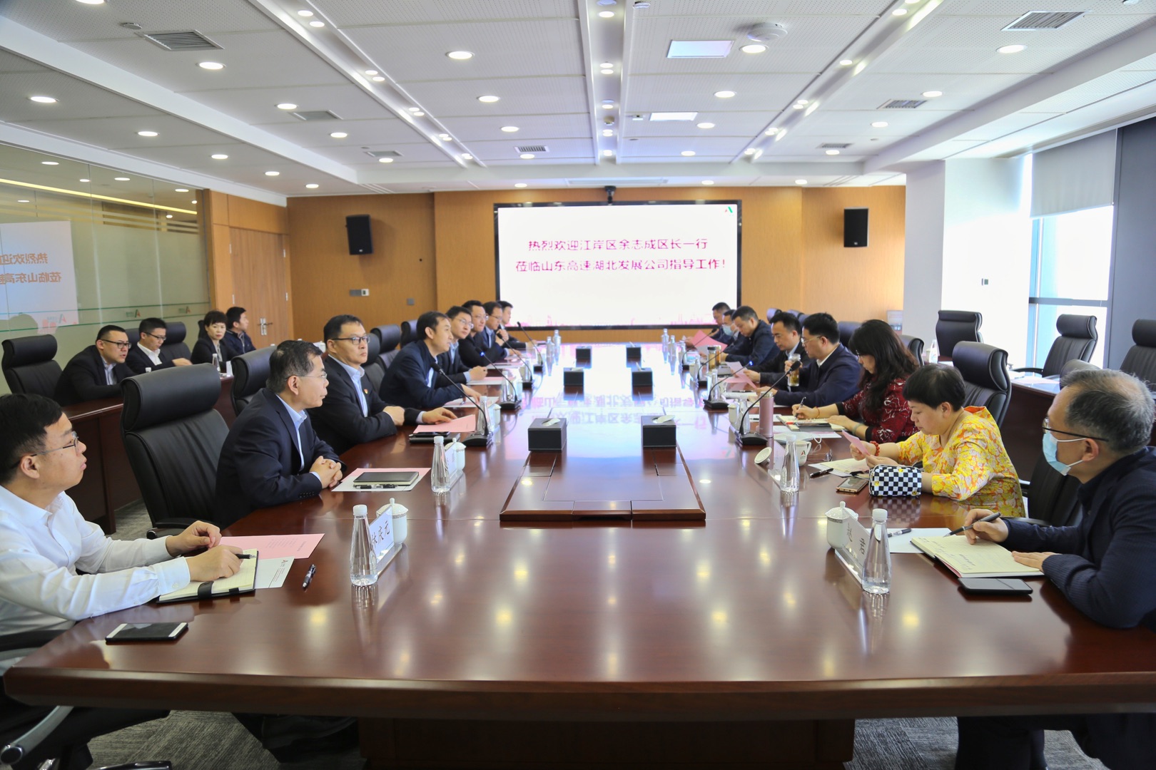 公司黨委書記、董事長隋進浩介紹了山東高速參與湖北經(jīng)濟建設(shè)的情況。他表示山東高速落戶江岸,看好江岸發(fā)展,希望能夠參與到江岸區(qū)基礎(chǔ)設(shè)施建設(shè)、智慧城市建設(shè)、國企股權(quán)改革中,發(fā)揮國有企業(yè)活力,為江岸區(qū)經(jīng)濟發(fā)展貢獻力量。